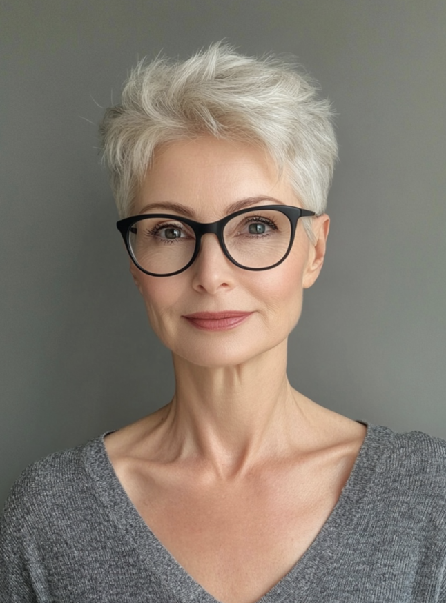 The classic pixie cut features short hair on the sides and back, short bangs, and more length on top of the head. It is flattering on most face shapes and great for women of all ages. This classic style remains a favourite because it is practical and versatile. A professional hairstyle for women over 60 with round faces.