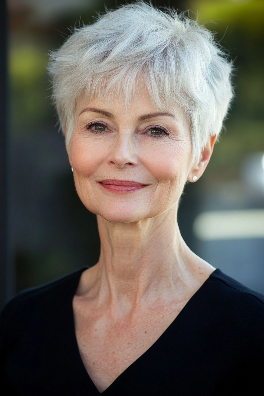 This short haircut for women is as fun as its name sounds! It allows the right amount of volume in the crown area, while seamlessly coordinating back to front. The cut can also be worn with highlighted hair for extra drama for 70 year olds to rock!
