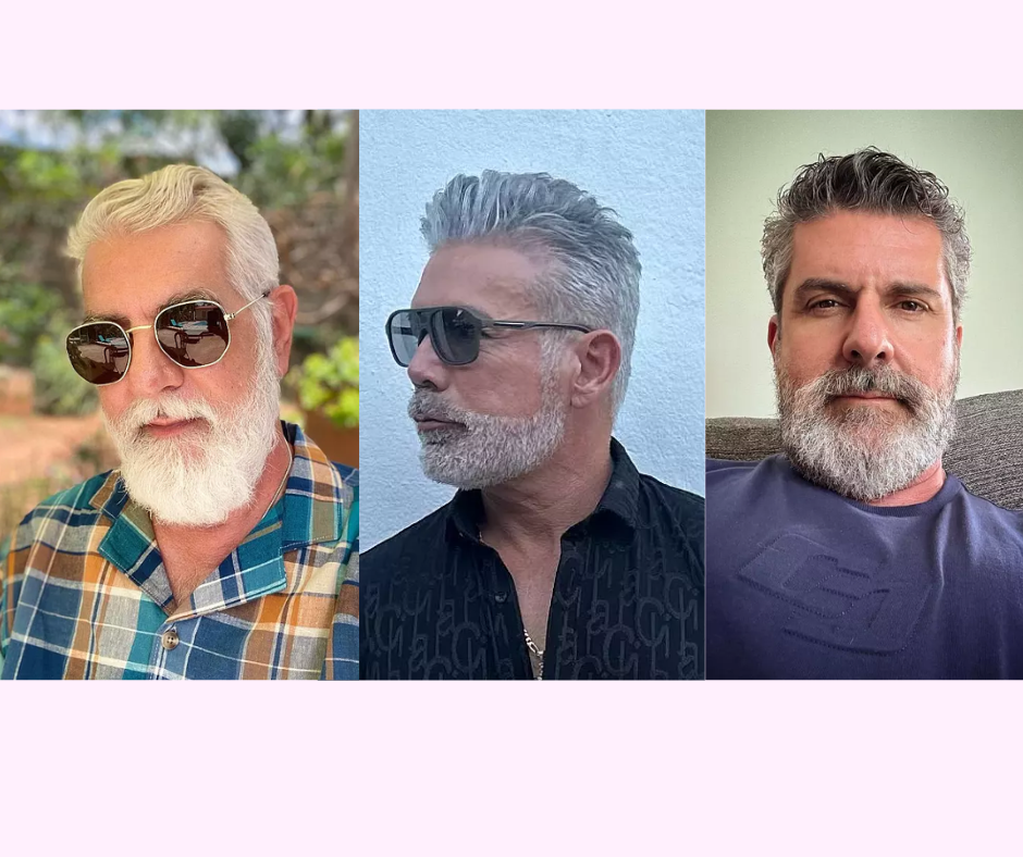 The natural silver-gray color adds maturity and elegance, making it look distinguished rather than overly styled. The sides are shorter and blended smoothly into the beard, which creates a clean and balanced appearance.